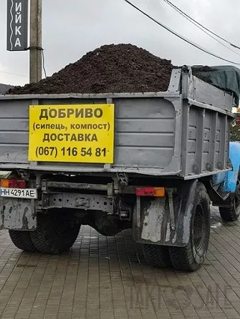 Органічні добрива. Чорнозем. Компост після вирощування печериць. Удобрює, розпушує та добре утримує вологу у ґрунті. В основі йде торф + курячий послід + інші мінеральні елементи. Доставка по Одесі та всій області. Ціна за мішок з-під цукру-90 гривень. Також є розсипом (камаз 12т-6000, зил 6т-4000, газель-3000.