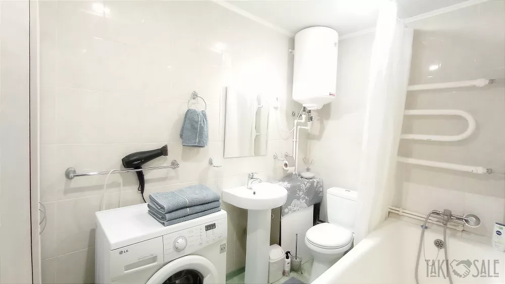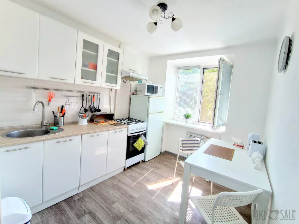 Бытовая техника: большой холодильник, бойлер на 80 л., микроволновая печь с сенсорным управлением, электрочайник, газовая плита, духовка, кондиционер тепло/холод, роутер Wi-Fi.