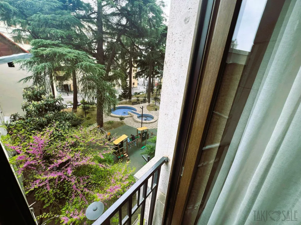 The apartment is corner, has 4 French balconies. The apartment has free Wi-Fi, TV and cable TV. The apartment is equipped with all necessary things.