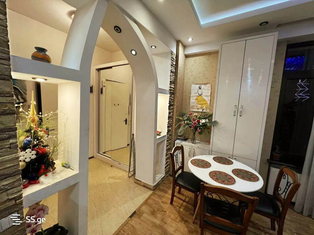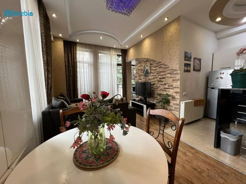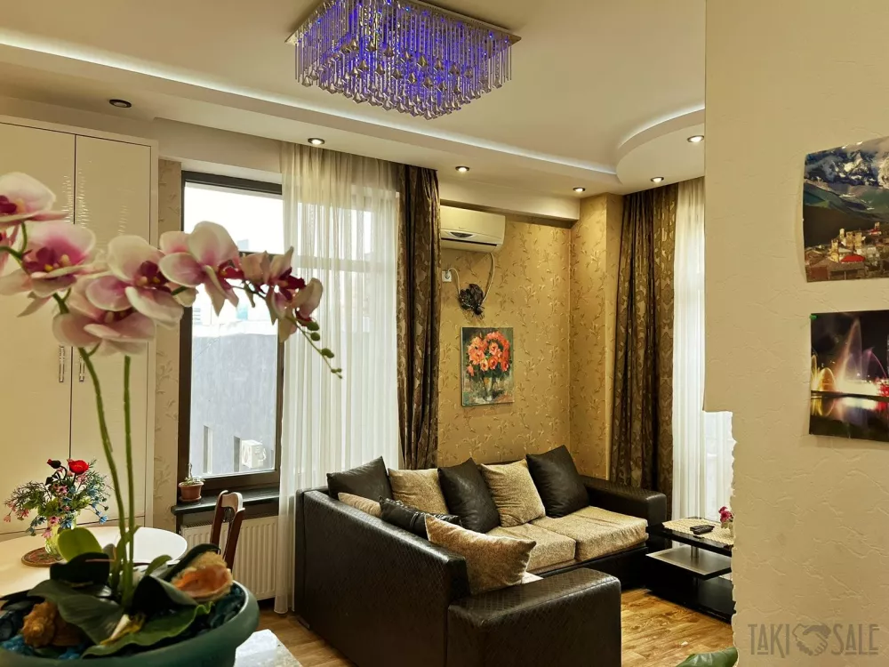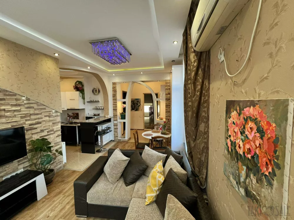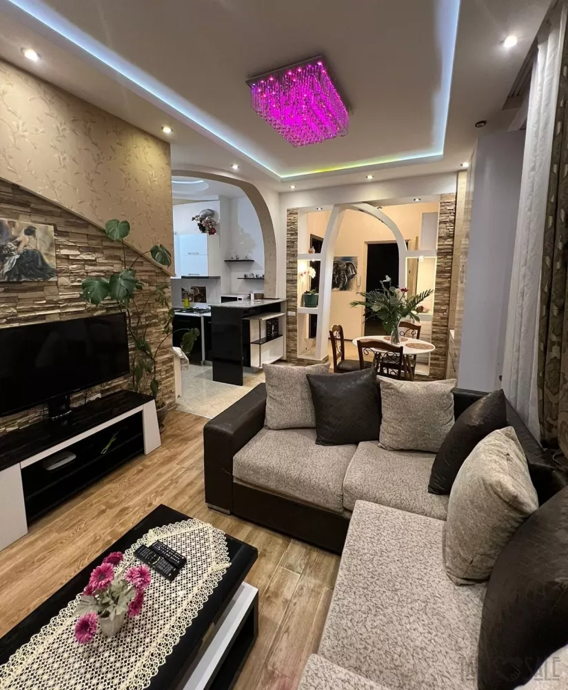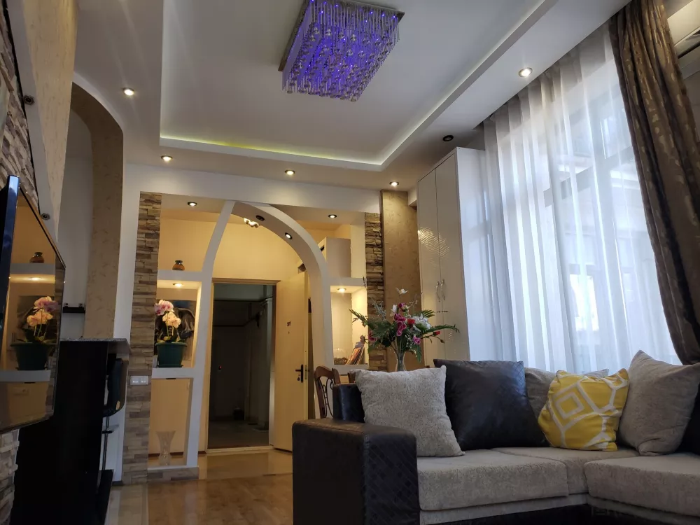 The apartment is corner, has 4 French balconies. The apartment has free Wi-Fi, TV and cable TV. The apartment is equipped with all the necessary things.