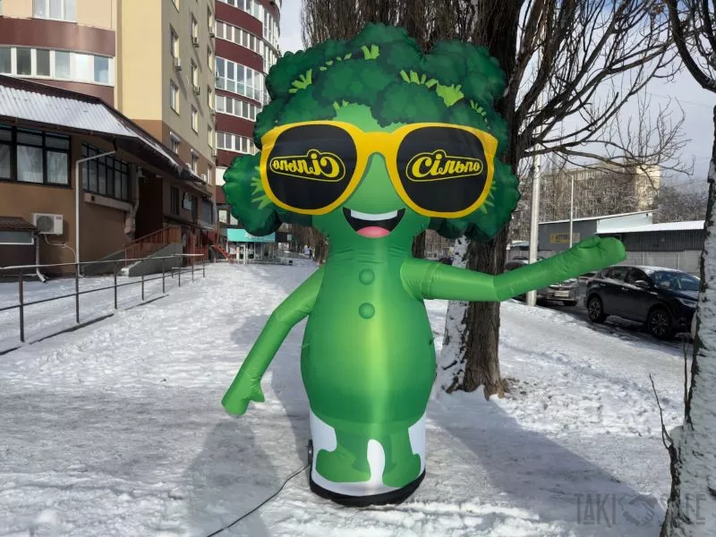 Вражаюча реклама вулична виготовлена з міцного поліестеру, придатна для використання в приміщенні, на вулиці. Висота рукомаха 3 метра 40 см.