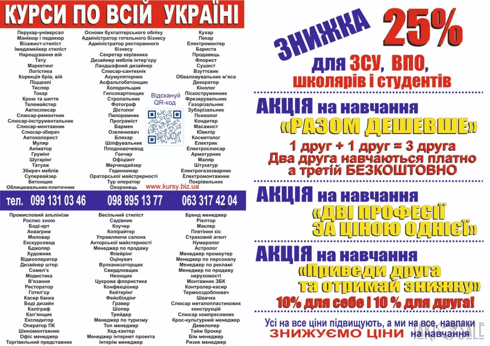 Курси зварник, електрик, маляр, слюсар, токар, плиточник.