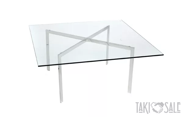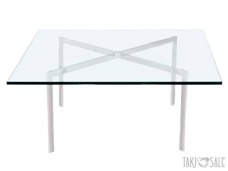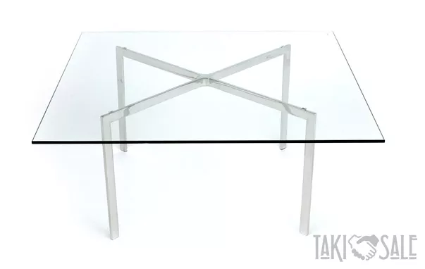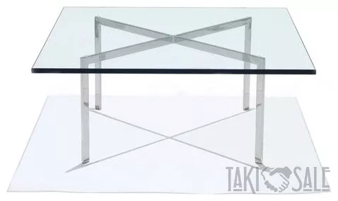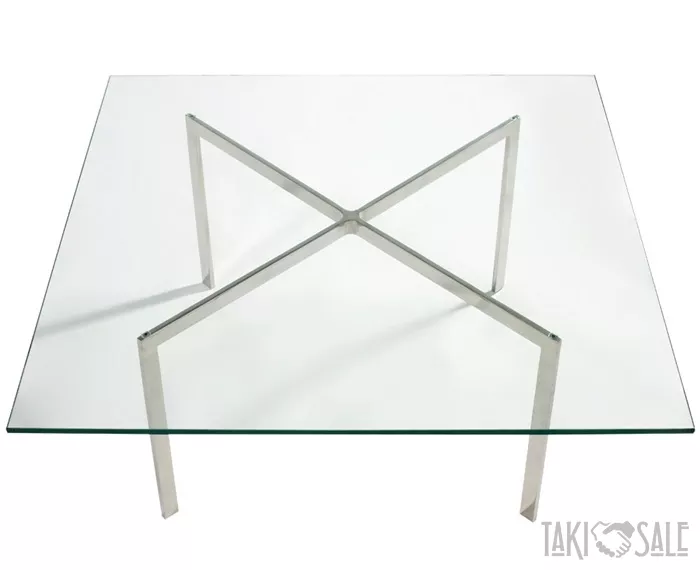 Стіл журнальний, проста, елегантна та дизайнерська модель, cтолешніца виготовлена із загартованого скла товщиною 12 мм, що робе її стійкою до подряпин, колір скла прозорий, основа столу металева з нержавіючої сталі, що робить усю конструкцію дуже міцною, розмір столу: ширина 100 см, глибина 100 см, висота столу 46 см.