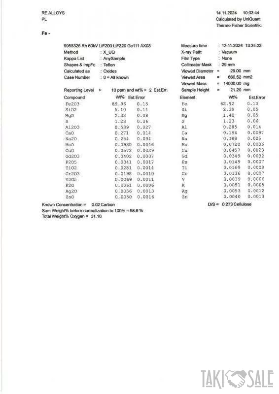 Iron Ore Fines (1.000.000 mt): 64,30% Fet