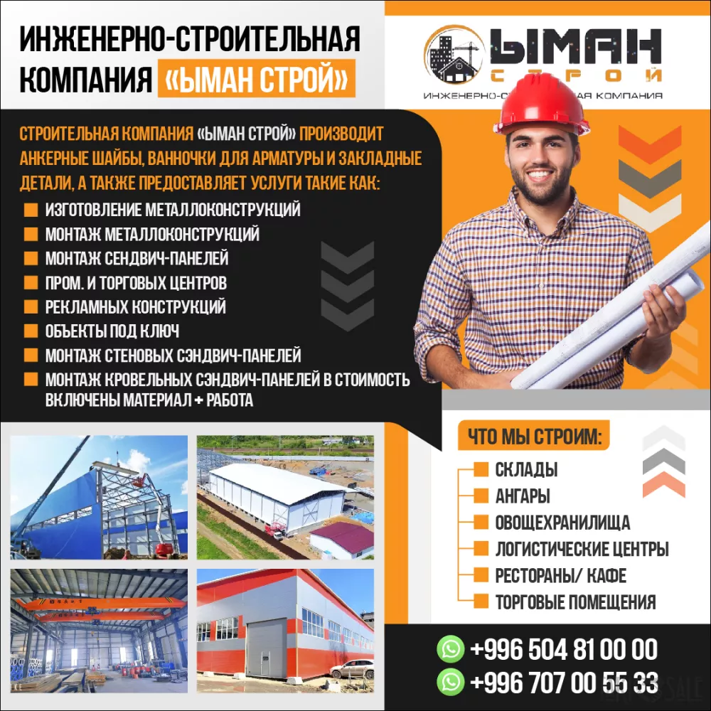 Строительная компания «Ыман Строй» производит анкерные шайбы, ванночки для арматуры и закладные детали, а также предоставляет услуги такие как: