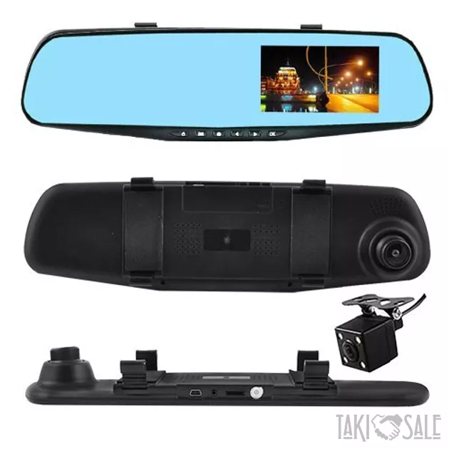 Комплектация: регистратор, силиконовые крепления 2 шт, кабель для зарядки от прикуривателя, камера заднего вида, инструкция на английском языке