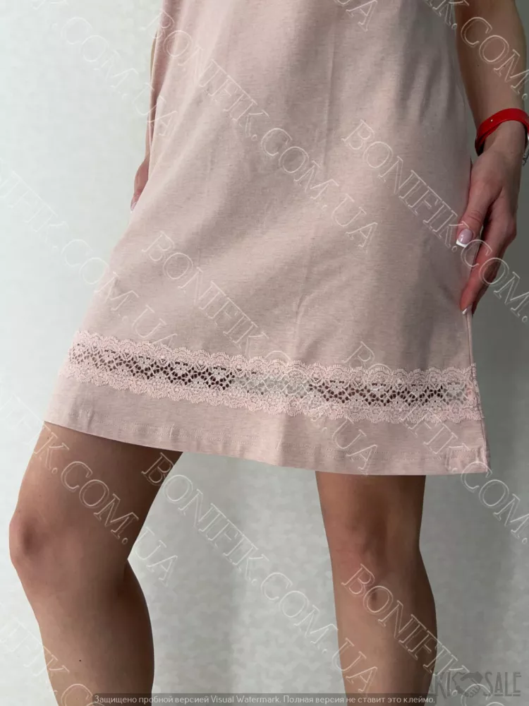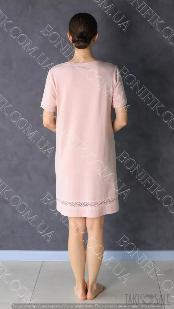 Нічнушка виготовлена із рожевого бавовняного полотна з додаванням еластанової нитки.