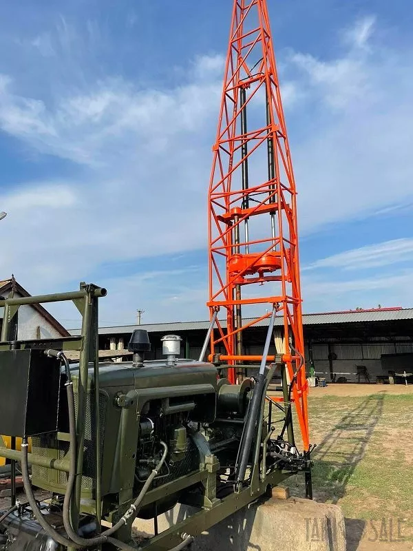 Буровая установка УГБ 50 стационарная предназначена для бурения гидрогеологических скважин, и для бурения под буроналивные сваи небольшого диаметра, а также под геологоразведку путем отбора керна ударно-канатным способом. Данная установка производит бурение шнеком до 100 метров , возможна установка вертлюга с промывкой под колонковое бурение штангой диаметром 50 и установка насоса ( за отдельную плату.) Данный станок является автономным, имеет отдельное электропитание свой привод, независимый от автомобиля. Буровой станок УГБ 50 может быть установлен на автомобиль или прицеп грузоподъёмностью 3750 кг и высотой пола 1 метр, при этом автомобиль или прицеп не нуждается в переоборудовании и может быть идентифицирован как отдельный груз с временным крепежом на кузов. Данная буровая при установке дополнительного оборудования может применяется для статистического зондирования до 30 метров и отбора керна. Буровая установка 1989 года выпуска в идеальном состоянии цена 10000 долларов.