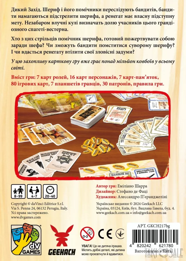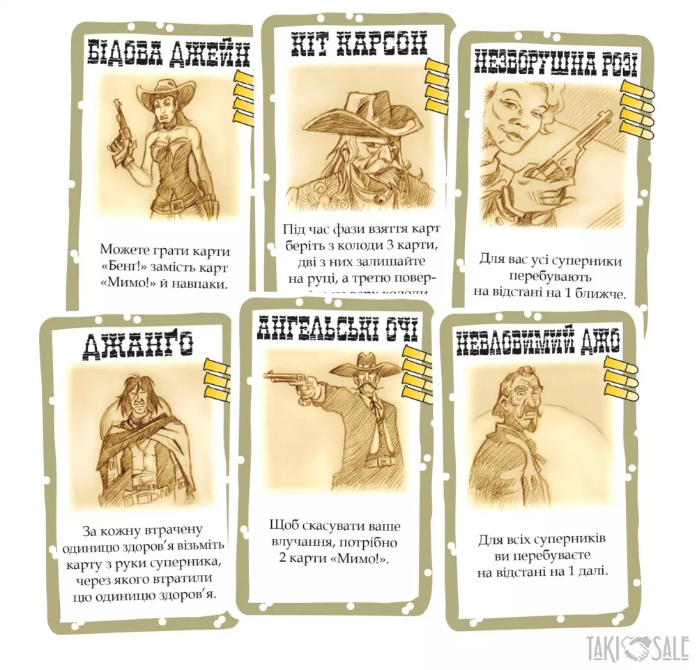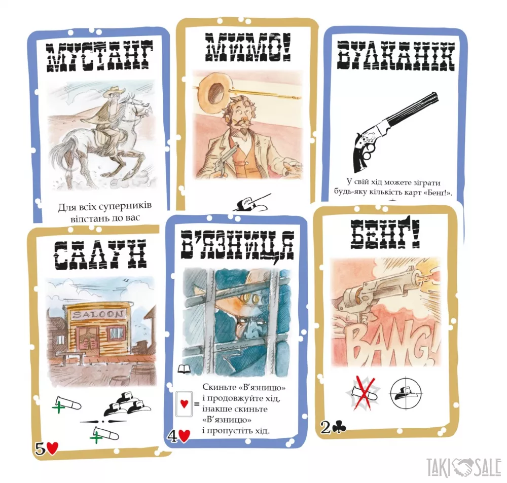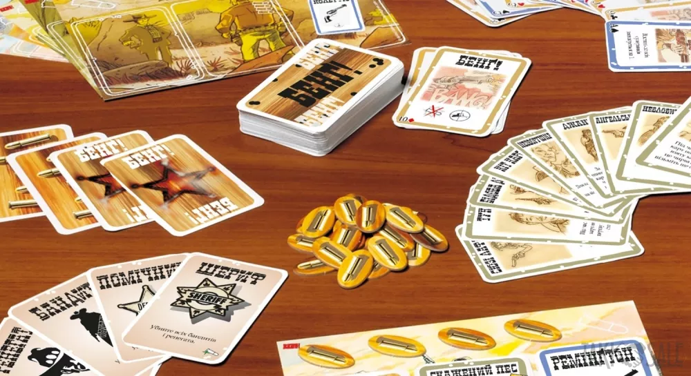 весела і динамічна карткова гра з таємними ролями, українська локалізація настільної гри Bang!, в якій на вас чекають карткові перестрілки в атмосфері спагетті-вестерну!