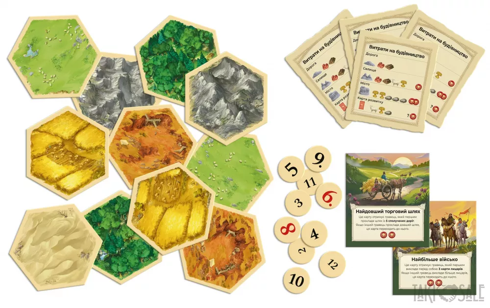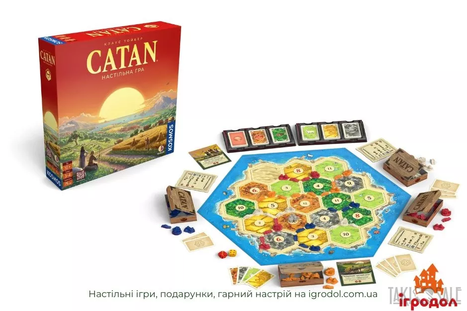 Catan - настільна гра, в якій гравці вирушать на острів Катан, щоб зайнятися видобутком ресурсів і будівництвом поселень. Прокладайте дороги до нових родовищ, наймайте армію, щоб захиститися від розбійників, і торгуйте з іншими гравцями - ось ключ до  перемоги в грі!