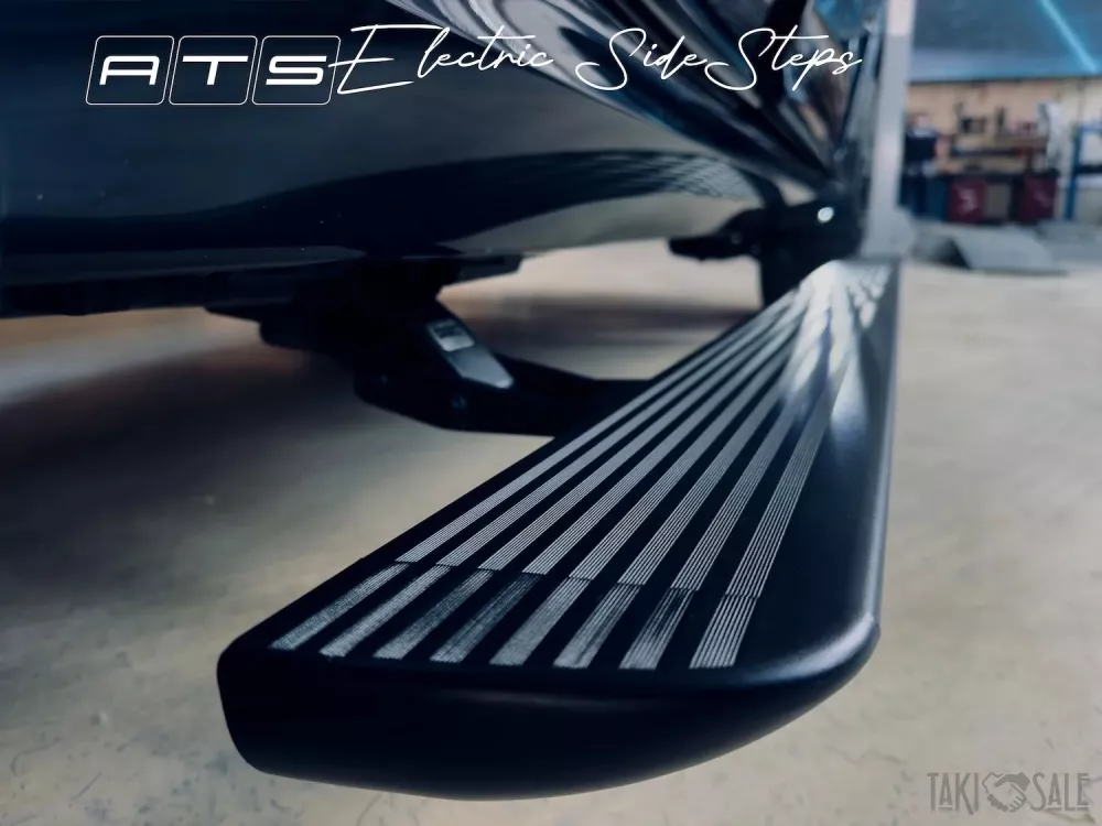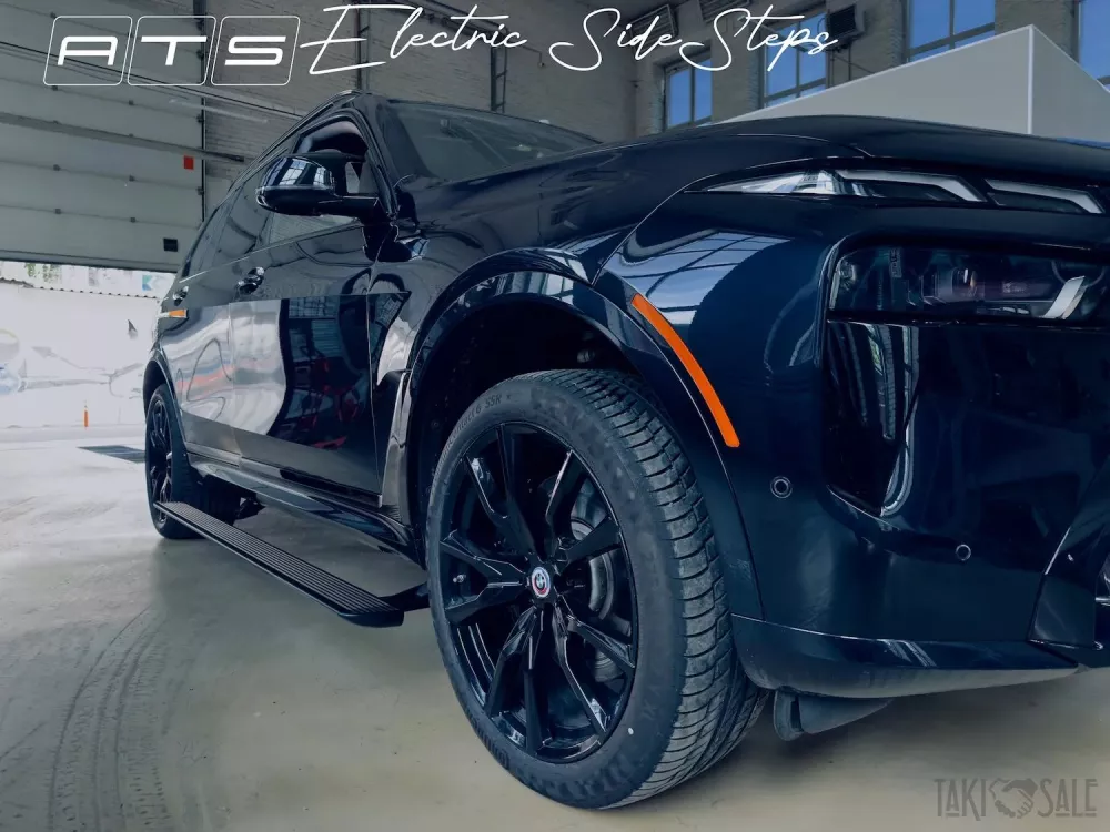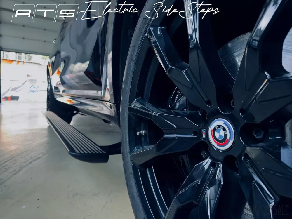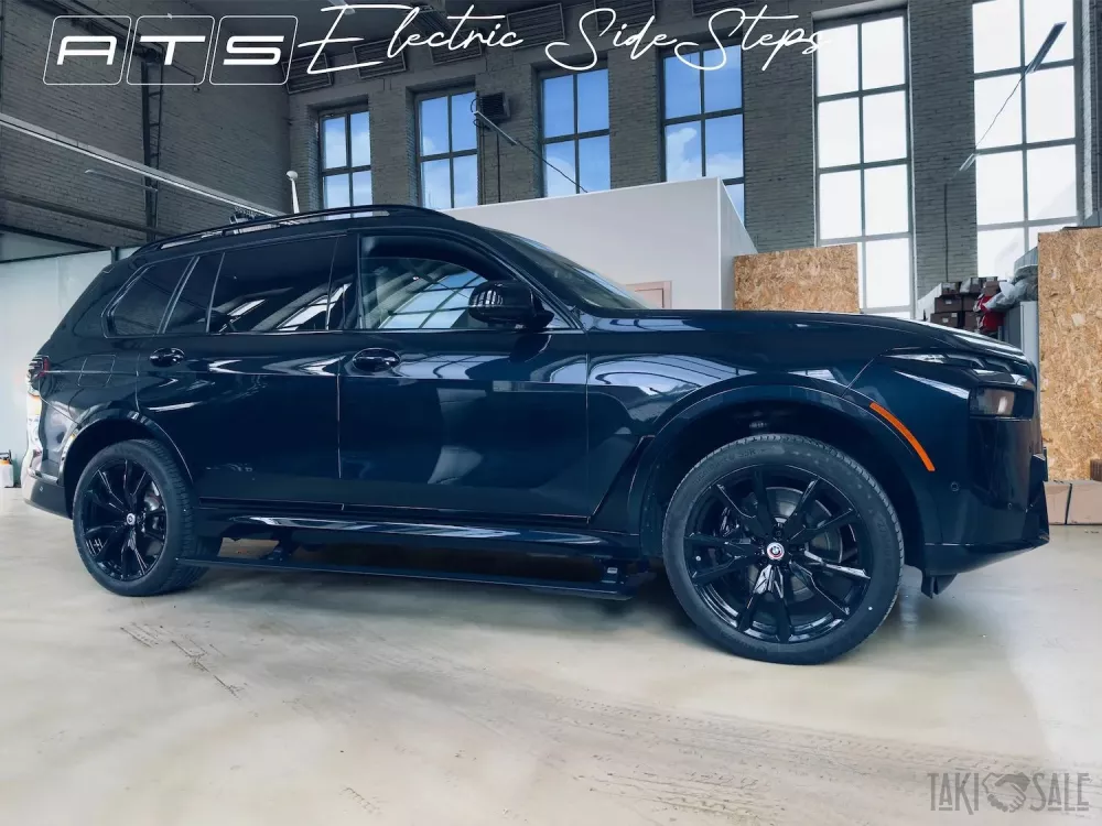 Пороги от компании ATS для автомобиля bmw X7 с дальним выходом ступени. Это совершенно новые пороги разработанные специально под БМВ X7. Учитывая конструкционные особенности этого автомобиля и различные расширяющие обвесы компания АТС сделала пороги с самым большим выходом панели ступени за корпус автомобиля. Пороги не меняют клиренс и выдерживают до 200 кг нагрузки на ступень.