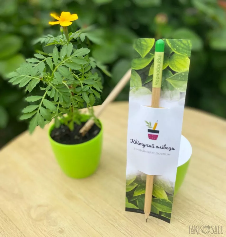 2) Квітучі олівці — креативна заміна візитівкам, можна розмістит ваш сайт або контакти (гравіювання або уф друк).