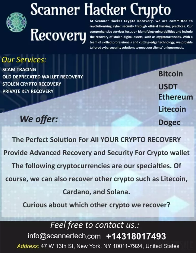 Additionally, expanding collaborative efforts with cryptocurrency exchanges, wallets, and law enforcement agencies can enhance the efficacy of recovery operations. By establishing partnerships, SCANNER HACKER could streamline the reporting and recovery process, allowing for a more coordinated response to incidents of theft or loss. Engaging in advocacy for better safety regulations within the cryptocurrency market would further solidify their role as a pacesetter in digital asset security and recovery. In summary, while SCANNER HACKER CRYPTO RECOVERY has made significant strides in addressing the urgent need for crypto asset recovery, an emphasis on transparency, education, and strategic partnerships could enhance their service delivery and foster greater trust within the digital currency ecosystem. Consult: info@scannerhacktech.com