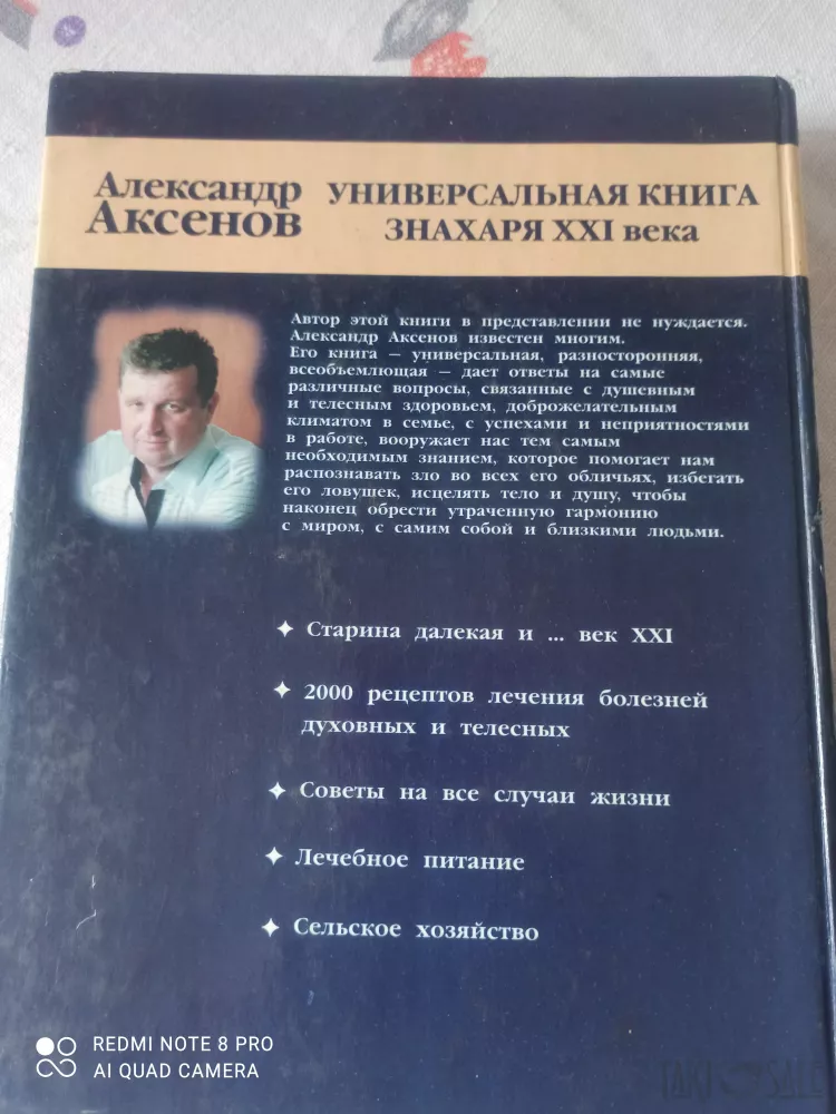 Продам книгу знахаря двадцать первого века. В книге приведены практические советы по исцелению, от многих болезней. Также, в книге содержался рецепты диетических блюд, салатов и компотов. Автор Александр Аксенов. Твёрдая обложка, Состояние-хорошее