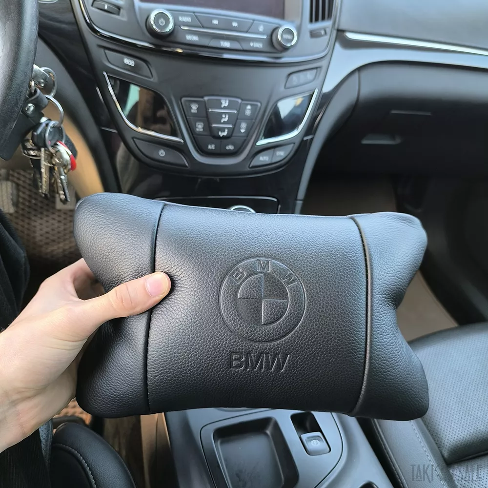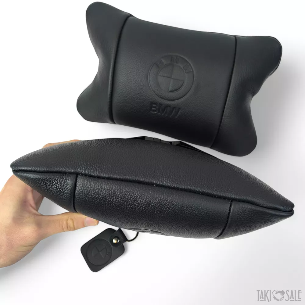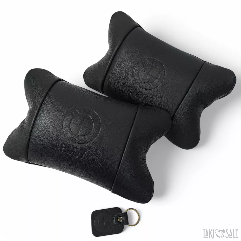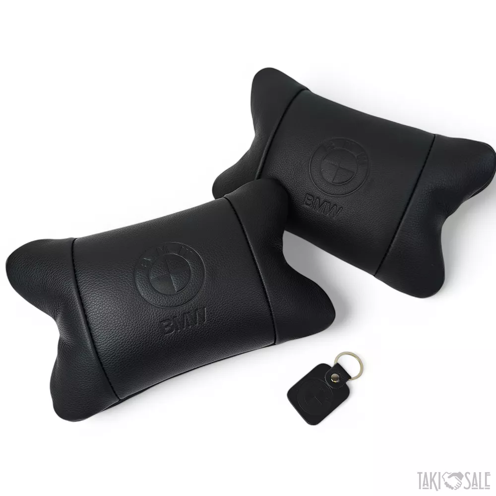 Премиальный набор автоподушек BMW из натуральной кожи – подушки + брелок.