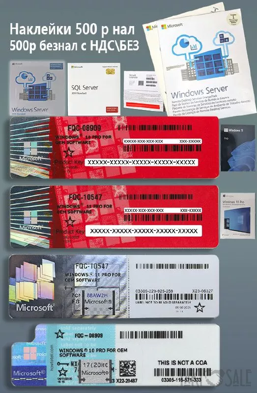 Конверты, наклейки для сборщиков ПО Windows 10/11 Pro OEM