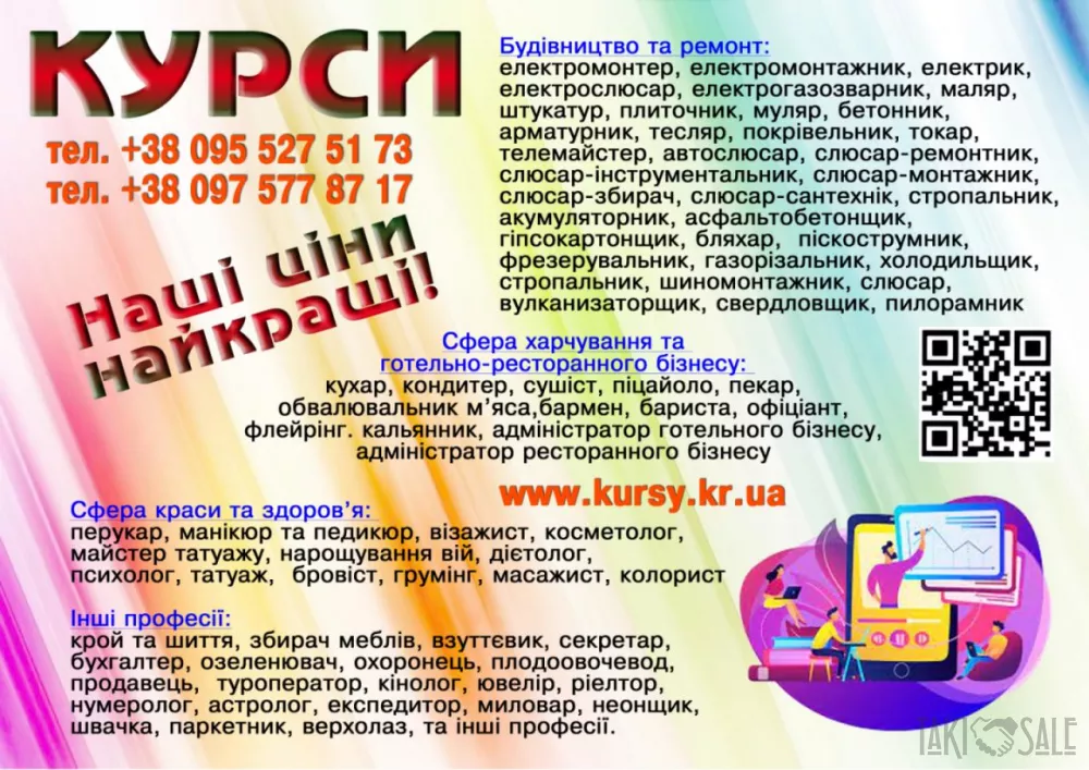 Курси кондитер, сушист, піццеолі, пекар, бармен, барист, кухар