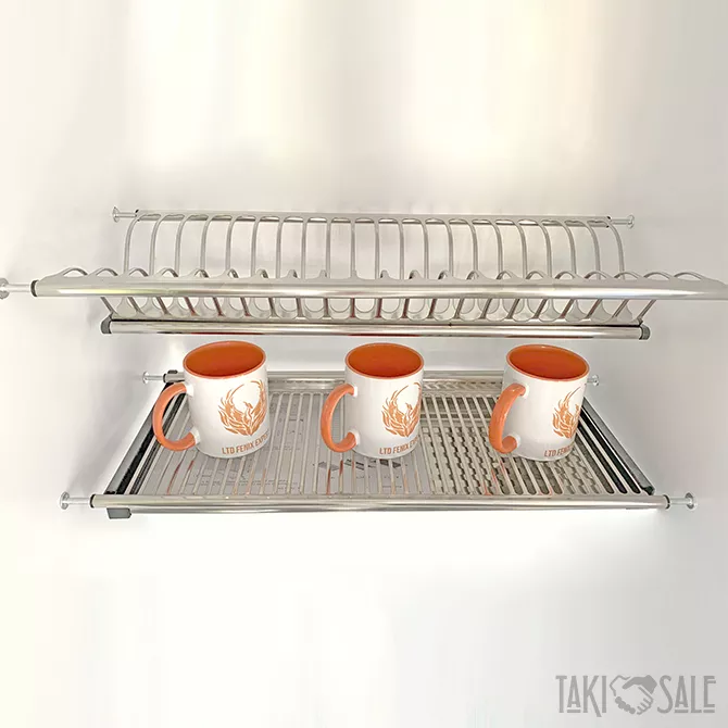 Встраиваемая двухуровневая сушка для посуды из высококачественной нержавеющей стали. Идеально подходит для установки в навесной кухонный шкаф.