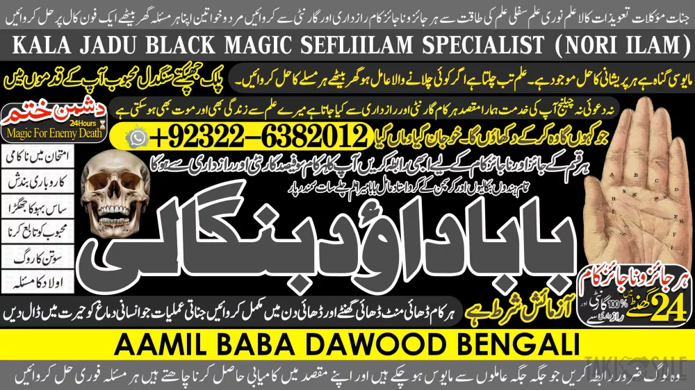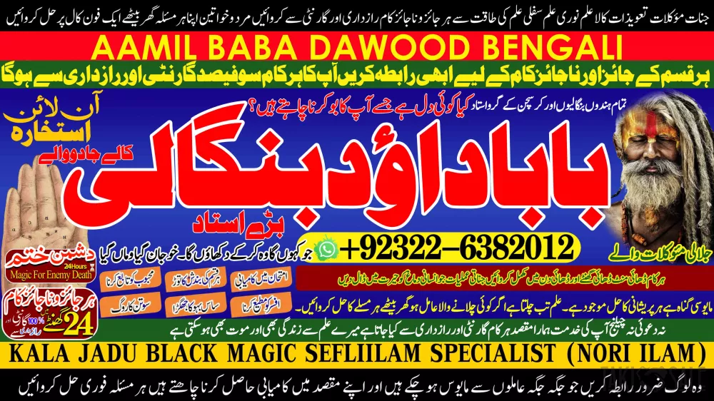 Amil Baba Dawood Bangali { PAK: 0322-6382012 ---- UAN: 0092-322-6382012} is a renowned spiritual healer and master of ancient occult sciences, specializing in Black Magic, Sephi Ilam, Nori Ilam, and Voodoo Spells. With decades of experience in the mystical arts, he has gained a reputation as a powerful and trusted guide for those seeking solutions to life's most challenging problems.