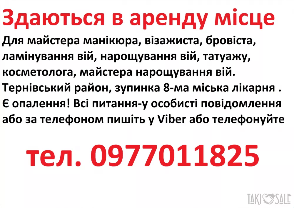 Аренда для манікюра, бровіста, шугарінга, косметолога, нарощування вій.