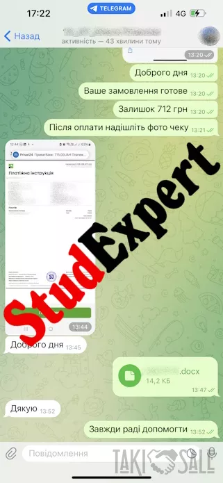 Важливо! StudExpert Company не продає жодних документів про освіту! Надаємо послуги виключно з пошуку та структурування інформації в якості прикладу.