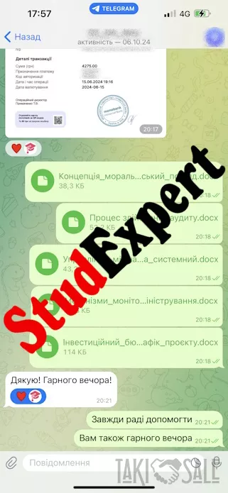 Важливо! StudExpert Company не продає жодних документів про освіту! Надаємо послуги виключно з пошуку та структурування інформації в якості прикладу.